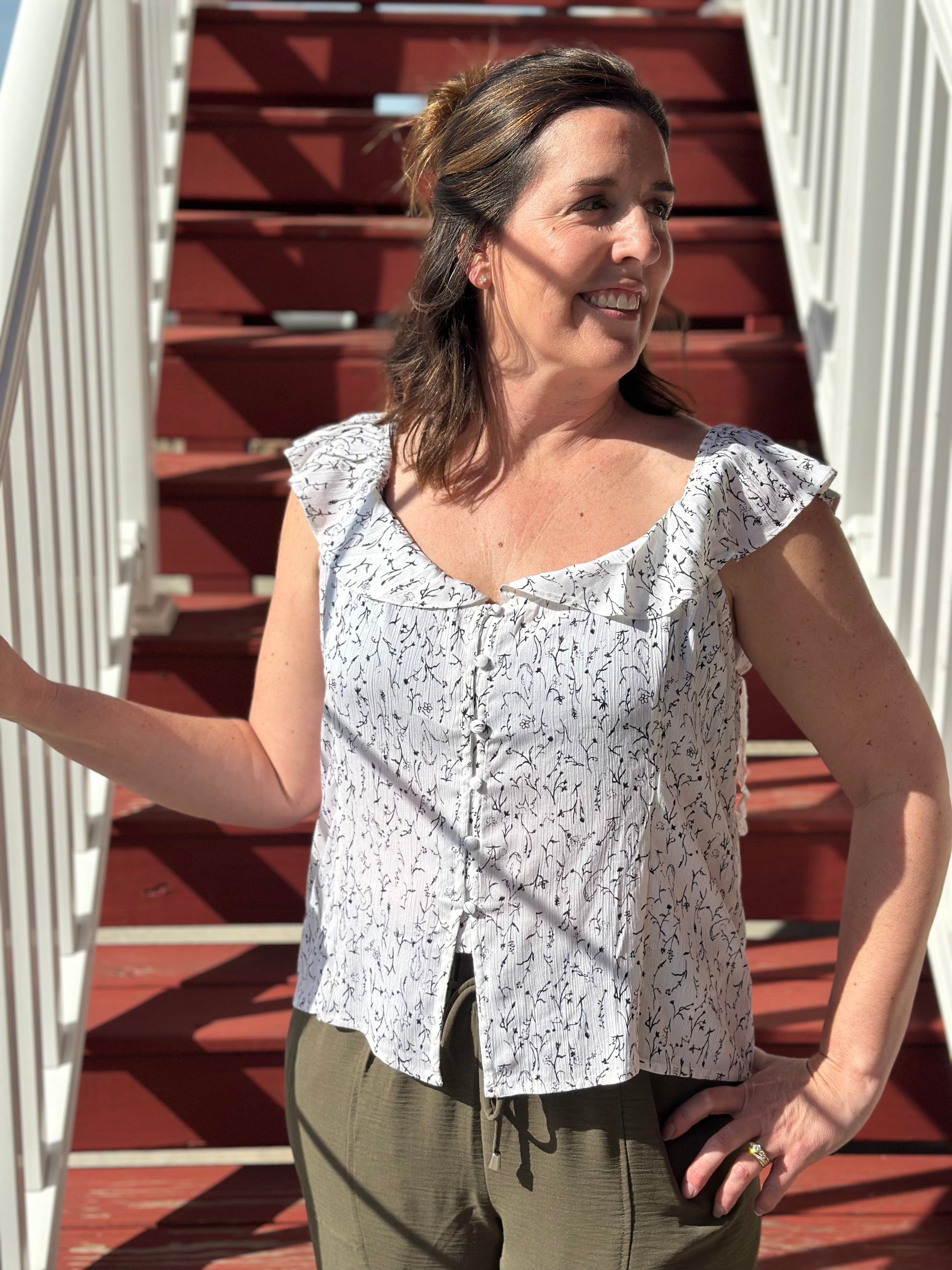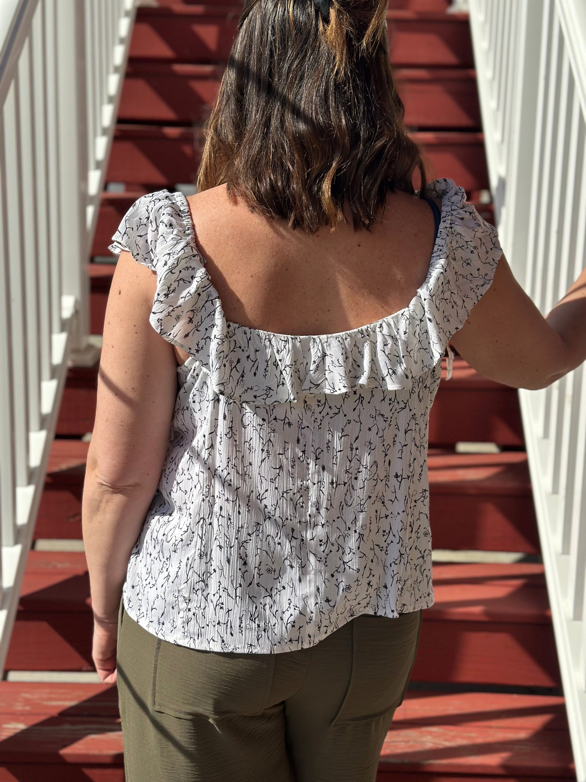 Elevate your wardrobe with this boutique-inspired black and white top, featuring an elegant branch motif that adds a touch of nature-inspired sophistication. Crafted from soft, breathable fabric, the top blends comfort with effortless style.