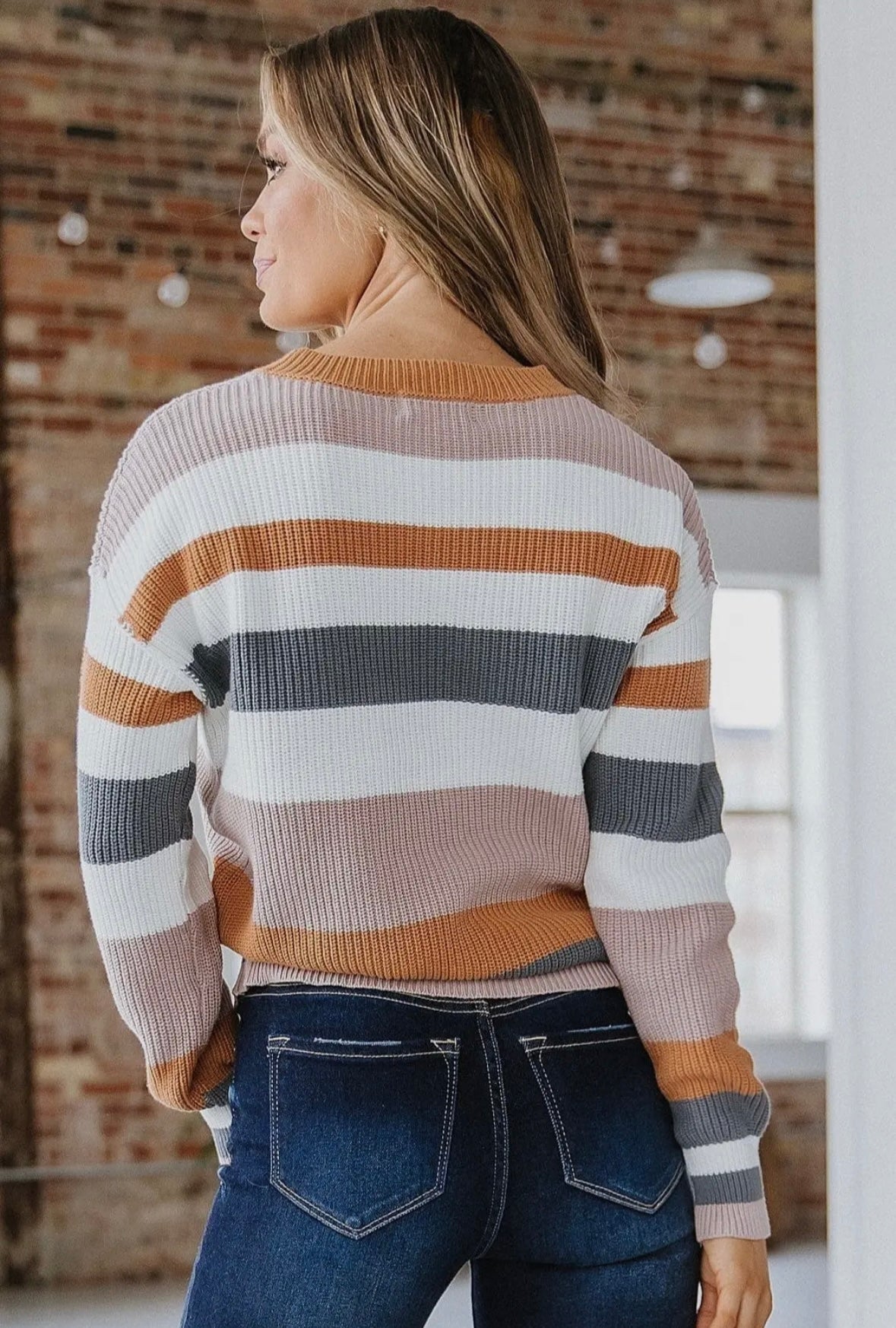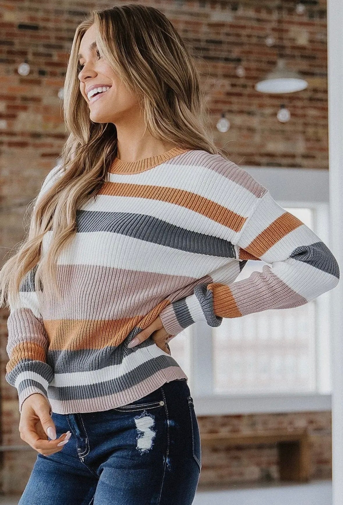 Wrap yourself in warmth and style with the Ruth Striped Knitted Sweater! Made from high-quality materials, this sweater will keep you cozy and comfortable while adding a touch of chic to your wardrobe. Its unique striped pattern and versatile design make it perfect for any occasion. Elevate your fashion game with the Ruth Striped Knitted Sweater.
