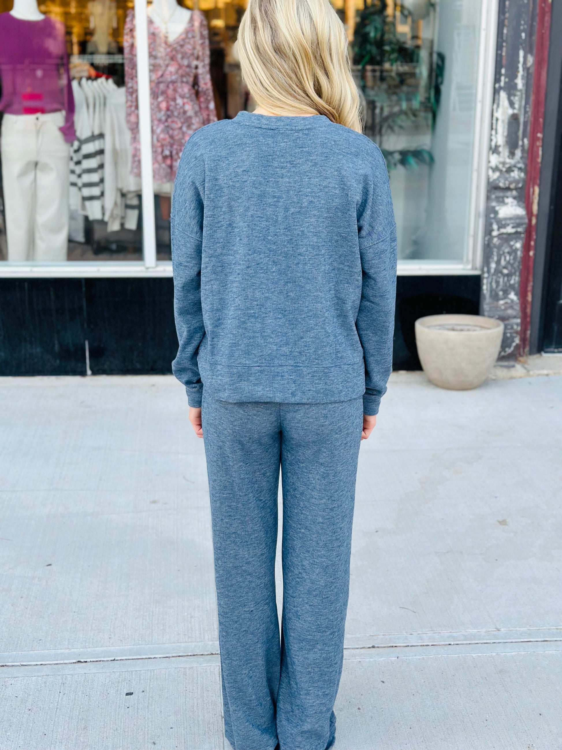 This body sweatshirt in blue is cozy for fall days!